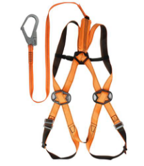 大挂钩全身式缓冲安全带;聚酯涤纶织带;悬挂作业、电信作业、高空作业;带背部D型环、安全带HA001与单大钩减震带AN209CD一体缝制,方便管理与使用;符合EN361、EN355标准。